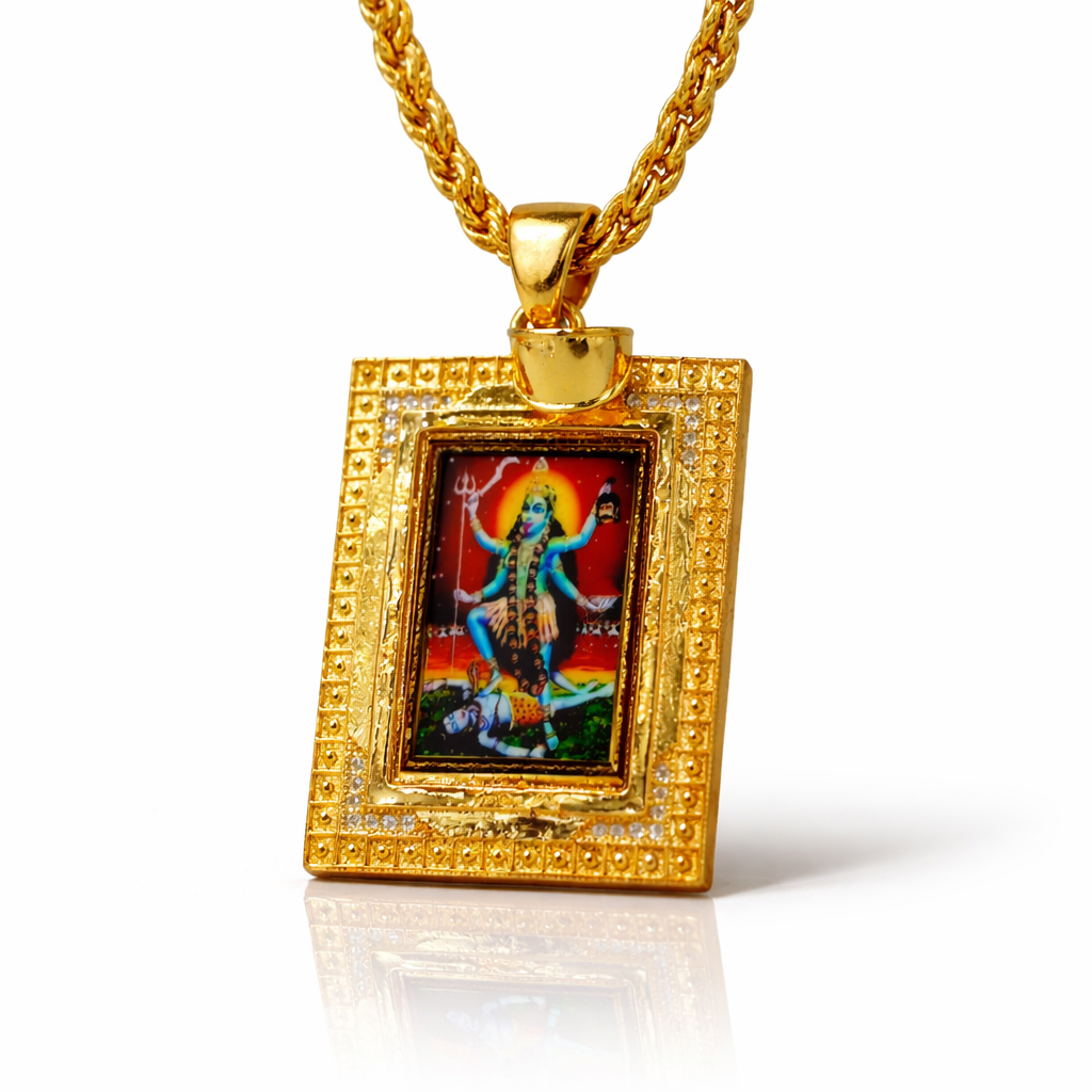 Our exclusive 1-gram gold plated photo pendants are not just a jewel, but a symbol of strength and faith. Be it the love of Meldi Ma, the protection of Mahakali Ma, the grace of Ramapir or the blessings of Chehar Ma – you will experience the beauty and power of the Lord in these pendants. They are made with gold plating, so that the photo remains safe and shiny forever. Keep your beloved deity close to your heart and feel their grace every moment." > Our premium 1-gram gold-plated photo pendants collection has arrived—whether it's the love of Maa Meldi, the protection of Maa Mahakali, the grace of Baba Ramapir, or the blessings of Maa Chehar. 👑 > They're designed in gold polish, so you can always keep your deity with you. Order now and get a royal and devotional look! 🙏 > ✅ High-Definition Photos > ✅ Real Gold Look > ✅ Long-Lasting Quality > ✅ Free Shipping (If applicable) > Get your deity's blessings today Payin! 📲 > #PhotoPendant #SpiritualJewelry #GoldPlated #Devotion #MaaMeldi #MaaMahakali #BabaRamapir #MaaChehar" >